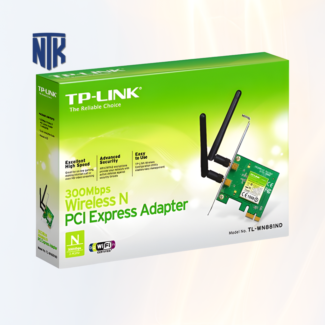 TP-Link PCI-E TL-WN881ND được thiết kế để lắp đặt vào khe PCI-E trên bo mạch chủ của máy tính để bàn, mang lại kết nối ổn định và hiệu quả hơn so với các thiết bị Wi-Fi gắn ngoài qua cổng USB.