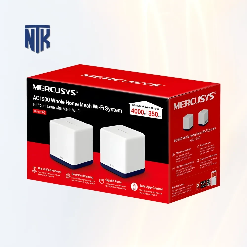 Mercusys Halo H50G 2-Pack là một trong những hệ thống Wifi Mesh đáng chú ý, được thiết kế để cung cấp kết nối Wi-Fi ổn định và mạnh mẽ cho không gian vừa và nhỏ. Với tốc độ AC1900Mbps và khả năng kết nối nhiều thiết bị cùng lúc, Halo H50G 2-Pack là giải pháp lý tưởng cho các gia đình nhỏ hoặc văn phòng có nhiều thiết bị thông minh cần kết nối Internet liên tục.