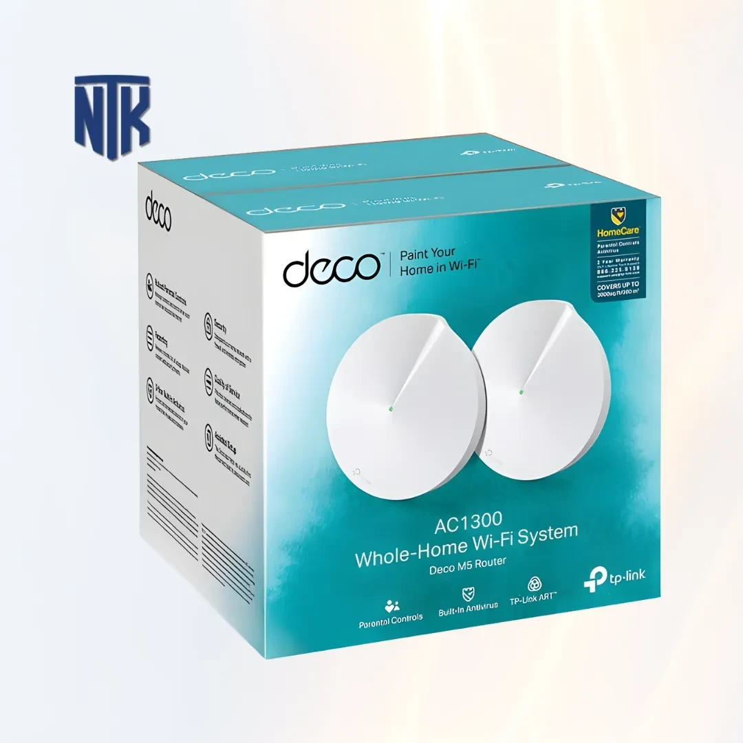 Trong môi trường làm việc hiện đại và cuộc sống số hóa, việc đảm bảo kết nối mạng Wi-Fi ổn định và nhanh chóng là điều không thể thiếu. TP-Link Deco M5 2-Pack là một giải pháp Wi-Fi Mesh được thiết kế để mang lại sự kết nối liền mạch, bảo mật và hiệu suất cao cho các không gian vừa và nhỏ như căn hộ hoặc văn phòng. Với khả năng phủ sóng rộng và tốc độ AC1300Mbps, TP-Link Deco M5 2-Pack đảm bảo loại bỏ hoàn toàn các điểm chết Wi-Fi, mang lại kết nối mượt mà cho mọi ngóc ngách trong không gian sử dụng.