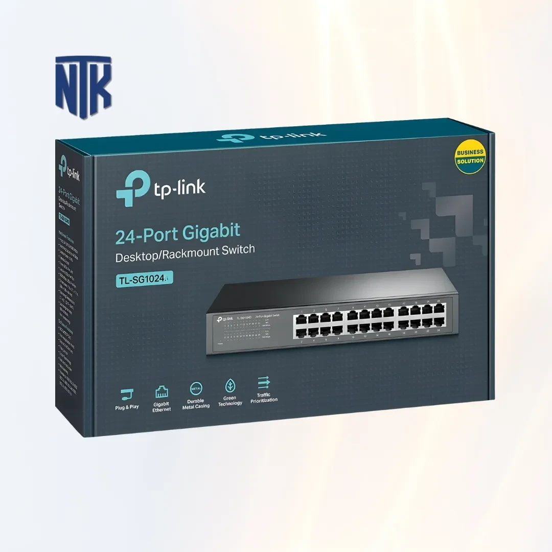 Trong các hệ thống mạng văn phòng, cửa hàng, hoặc phòng kỹ thuật có nhiều máy tính bàn, camera IP, router, hay access point, việc mở rộng cổng mạng luôn là một nhu cầu rất thực tế. Khi số lượng thiết bị tăng lên, một switch ổn định sẽ giúp mạng nội bộ vận hành trơn tru, giảm nghẽn băng thông và tránh tình trạng dây mạng chằng chịt phải cắm qua nhiều thiết bị trung gian. Chính vì vậy những mẫu Switch 24 port TP-Link TL-SG1024 thường được lựa chọn trong các hệ thống thiết bị mạng quy mô vừa, nơi cần nhiều cổng RJ45 Gigabit để kết nối dây mạng Cat5e, dây mạng Cat6 hoặc các chuẩn cáp cao hơn.